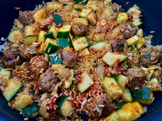 Cette recette fonctionne aussi très bien avec des alternatives végétales ( boulettes veggie, haché végétal…)